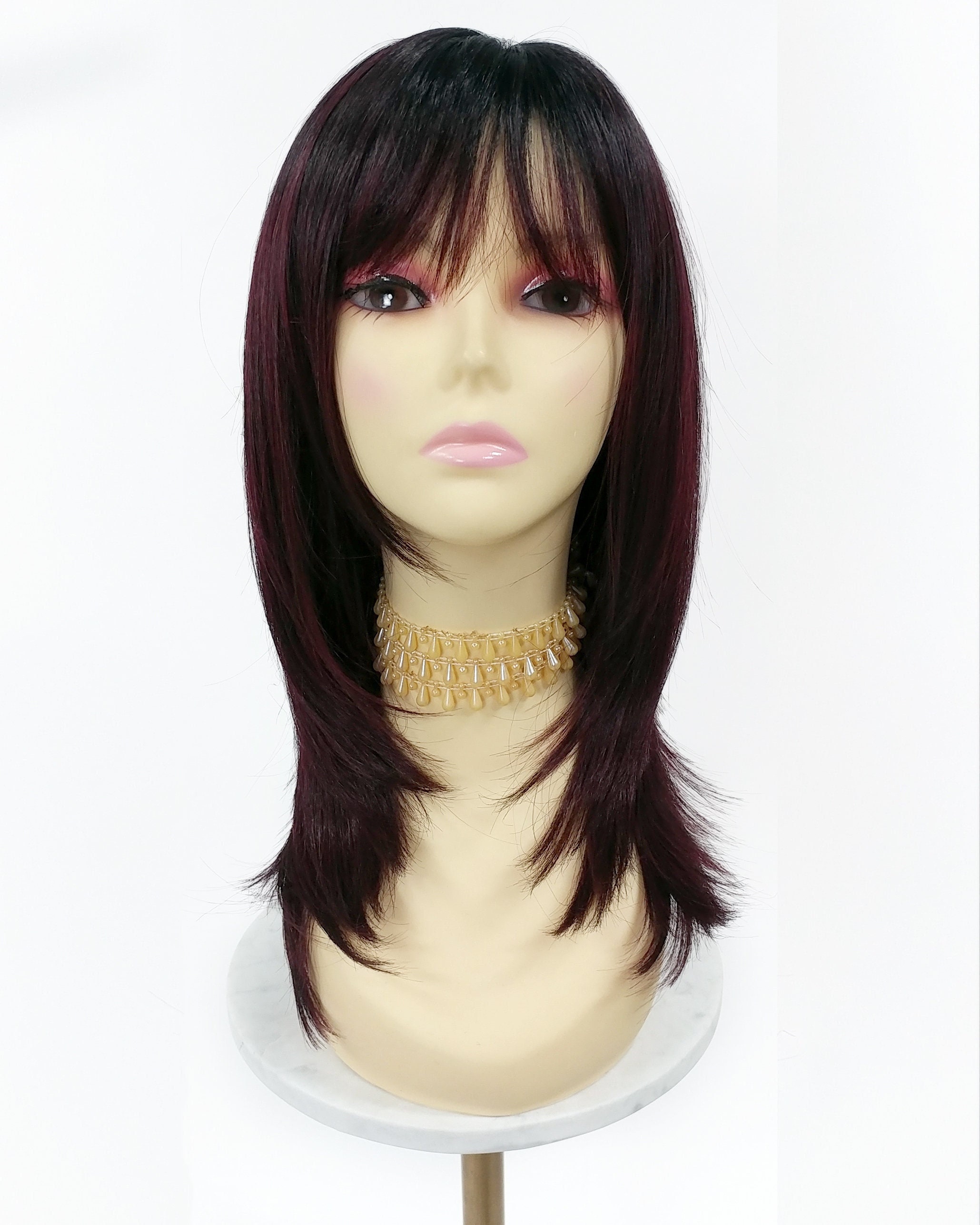 17 Inch Dark Burgundy With Dark Roots Long Straight Layered Etsy